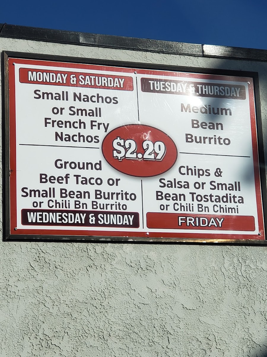 - Kids Meals: A range of smaller dishes designed for younger diners, including bean tostadas, bean burritos with red or green sauce, junior burgers, ground beef tacos, hot dogs, and chicken nuggets.