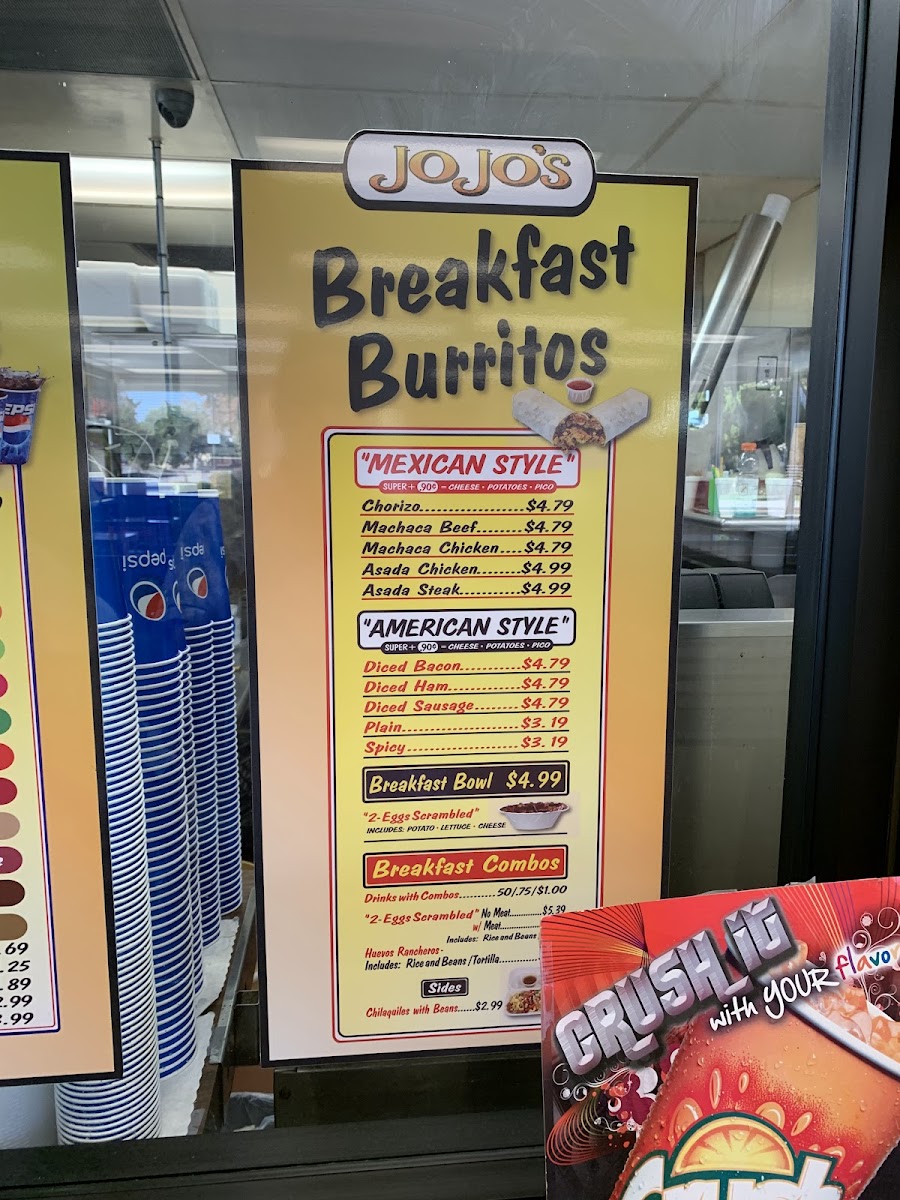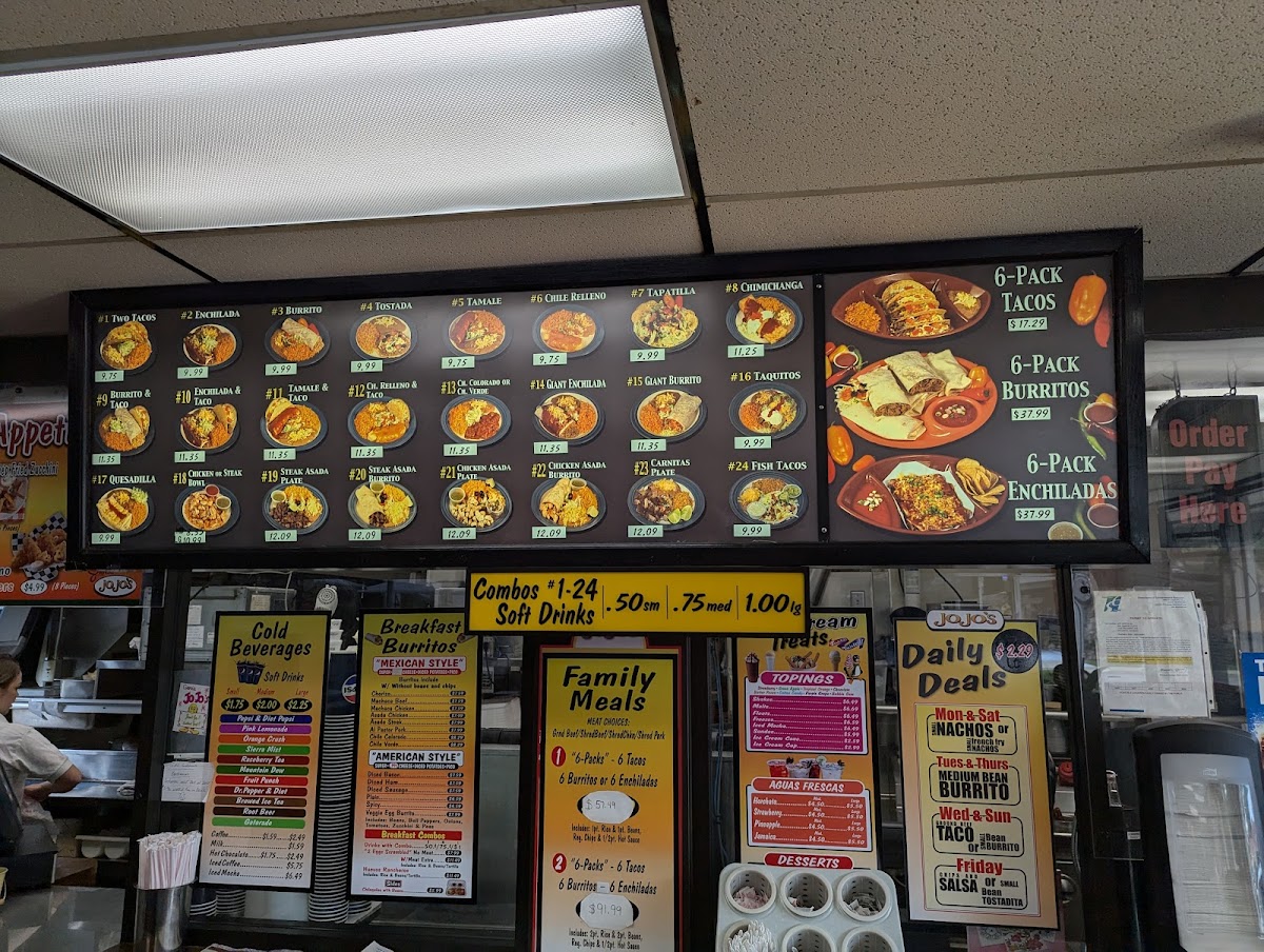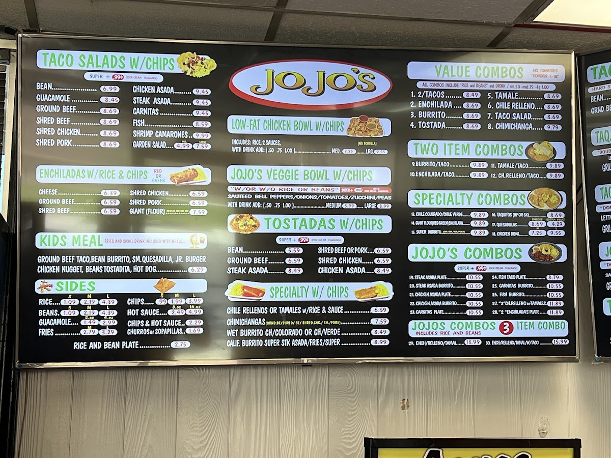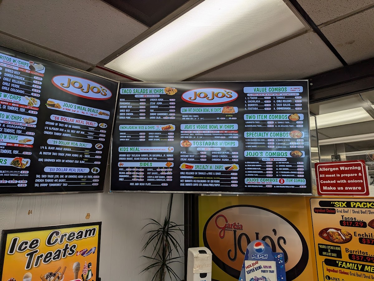 The menu at Garcia JoJo's features a variety of Mexican and fast food options suited for breakfast, lunch, and casual dining. It includes a selection of specialty burritos, tacos, enchiladas, and other traditional Mexican dishes. Visitors can choose from items prepared with different sauces and fillings, accommodating tastes for beans, cheese, shredded beef, chicken, pork, and fish.
